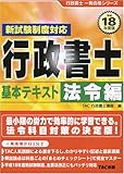 行政書士基本テキスト 法令編〈平成18年度版〉 (行政書士一発合格シリーズ)価格: 2,520円レビュー評価: 4.5 レビュー数:3 憲法から商法まで行政書士試験の法令に関する部分を網羅的に説明する。淡々と同じような調子で説明が続くのがテキストっぽくてよい。逆にもう少し会話調で親しみを持って学びたいのなら同シリーズ「講義生中継」を読めばよいと思う。大きな単元終了後にチェックシートがあるがこれが有効に働く。分からないところに印をつければ、まとまって説明されている該当部分をもう一度読み直せばよい。これがテキストのよさ。知識の確認にも使える。